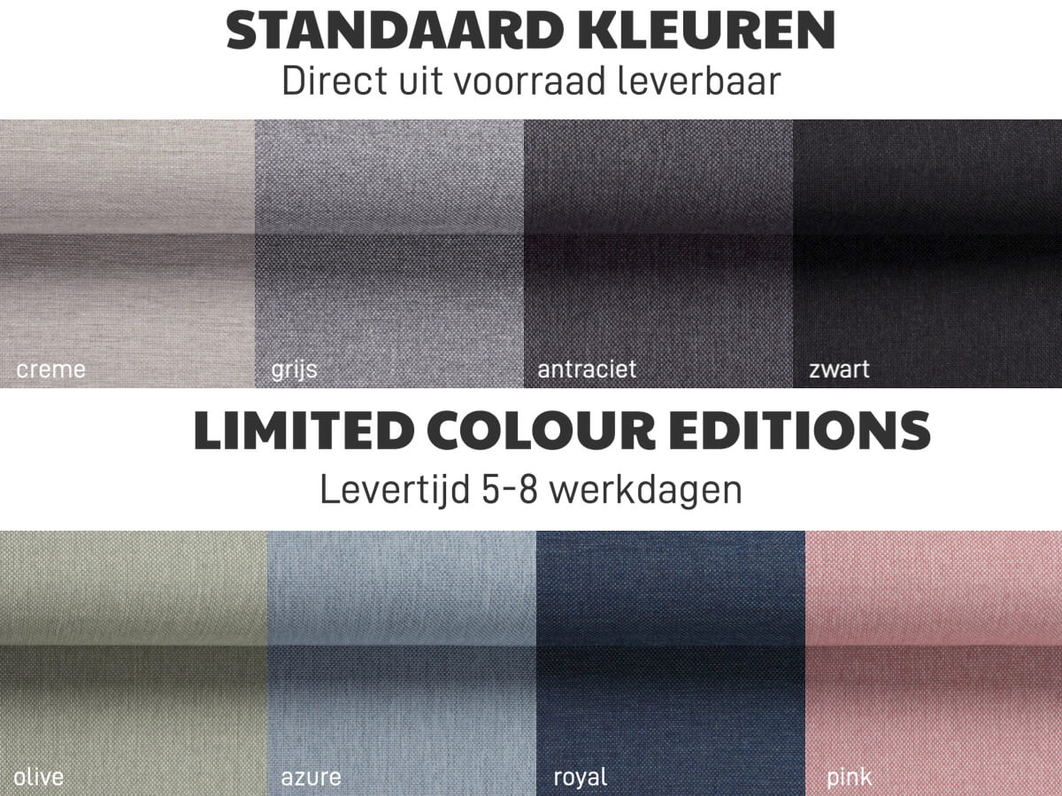 Een boxspring is een slaapoplossing die bestaat uit 1 hoofdbord, 2 onderboxen op pootjes met daarbovenop 2 losse 1 persoons matrassen of 1 geheel matras afhankelijk van het model, de maatvoering en de persoonlijke voorkeur. Het geheel wordt afgemaakt met een topper naar keuze. Dit is een extra topmatras dat bovenop de normale matrassen van de boxspring wordt geplaatst voor maximaal comfort. Je kunt je boxspring bij ons samen stellen naar eigen wens!